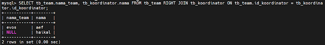 15. Get Data From Table tb_team And tb_koordinator Using Right Join